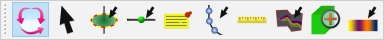 By default, the Mode toolbar is docked on the top, left corner of the 3D View window. This toolbar is used to enter different modes, allowing your cursor to interact with the 3D display in different ways. For example, you can enter Pick mode to make and modify surface picks, or Measurement mode, to measure or annotate distances.