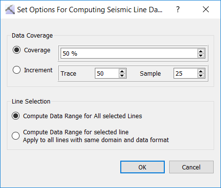 Options: Open the Set Options for Computing Seismic Line Data Range dialog box.