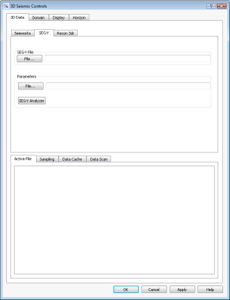 There are three tabs used to select seismic data. Once you select a file, the tabs at the bottom of the dialog box will become active.