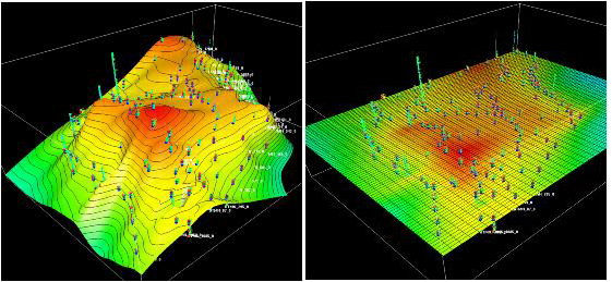 Note: Because the datum operation is performed by mapping the surface using all of the picks in the database, a well does not need to contain a pick for the datum horizon in order to be shifted. The well is shifted relative to the wells that do contain picks based on the intersection of the mapped surface with the well.