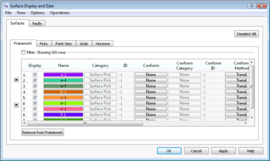 Remove from Framework: Remove the selected surfaces from the Framework tab. This does not remove the data from the project. It will still be available on the data tab.
