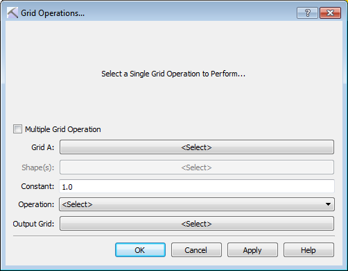 Operation: Select an operation from the list. An explanation for each operation is displayed at the top of the dialog box. Note: The list of available operations is different for single and multiple grid operations. See Operation descriptions...