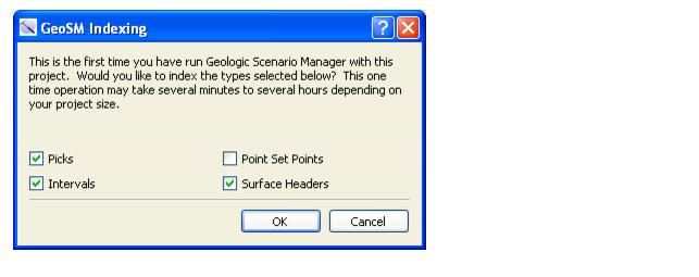When you launch the Geologic Scenario Manager for the first time, you can choose which data types to index and track. If you don't select a specific data type, changes will never be tracked.