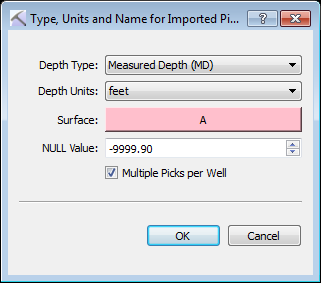 . This will open the Type, Units and Name for Imported Picks dialog box.