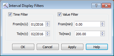Use the Interval Display Filters dialog box to apply a time or value filter to all of the intervals being displayed in the project.