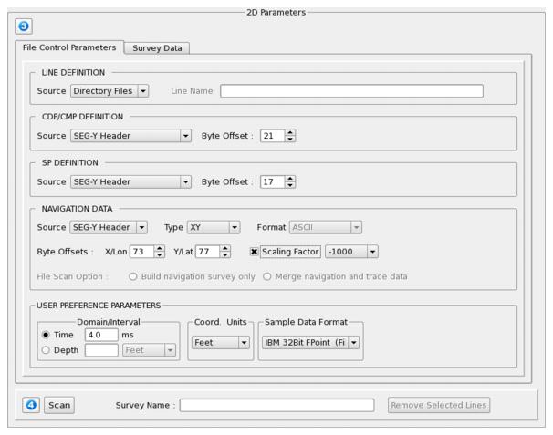 Scan: Scan the file to populate the Data Extents, and Survey Coordinates fields.