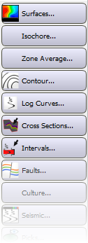 There are five toolbars in the Map View window, used to control the display, and access other tools in the software, as well as an active dialog box, used to select well. Some of the tools can also be accessed from the menus.