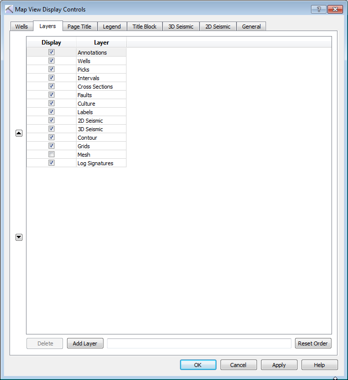 , or from theView menu select Map Controls, and then choose General, Layers, Wells, 2D Seismic, 3D Seismic, Titles, or Legend.