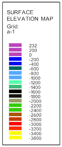 Surface Legend: Display the color spectrum of the currently displayed surfaced using the specified parameters. By default this will be displayed on the right side of your project area. You can drag the scale legend to a new location while in Movement mode. Note that this will not be visible when no surface is being displayed.