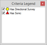 Criteria Legend: The Criteria Legend active dialog displays all of the criteria in your project, and can be used to quickly turn the criteria on and off. This is turned off by default.