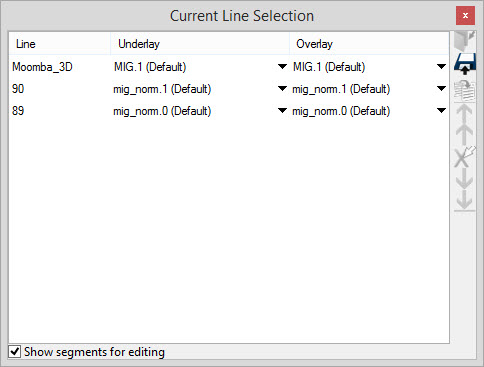 Underlay: The version of the line which will be displayed as the underlay in the Seismic Viewer. By default this will be the working set version of the line. Click on the cell and select another version of the line to from the list to change the underlay.
