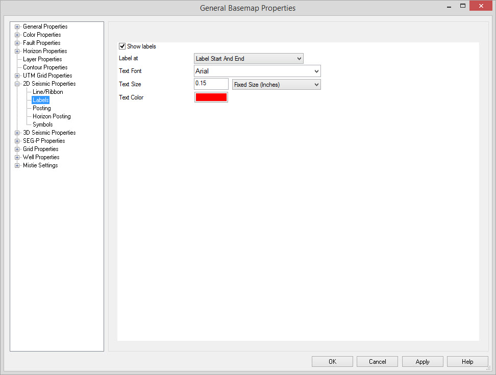 Use this to customize the labeling of the 2D seismic lines displayed on the Basemap.