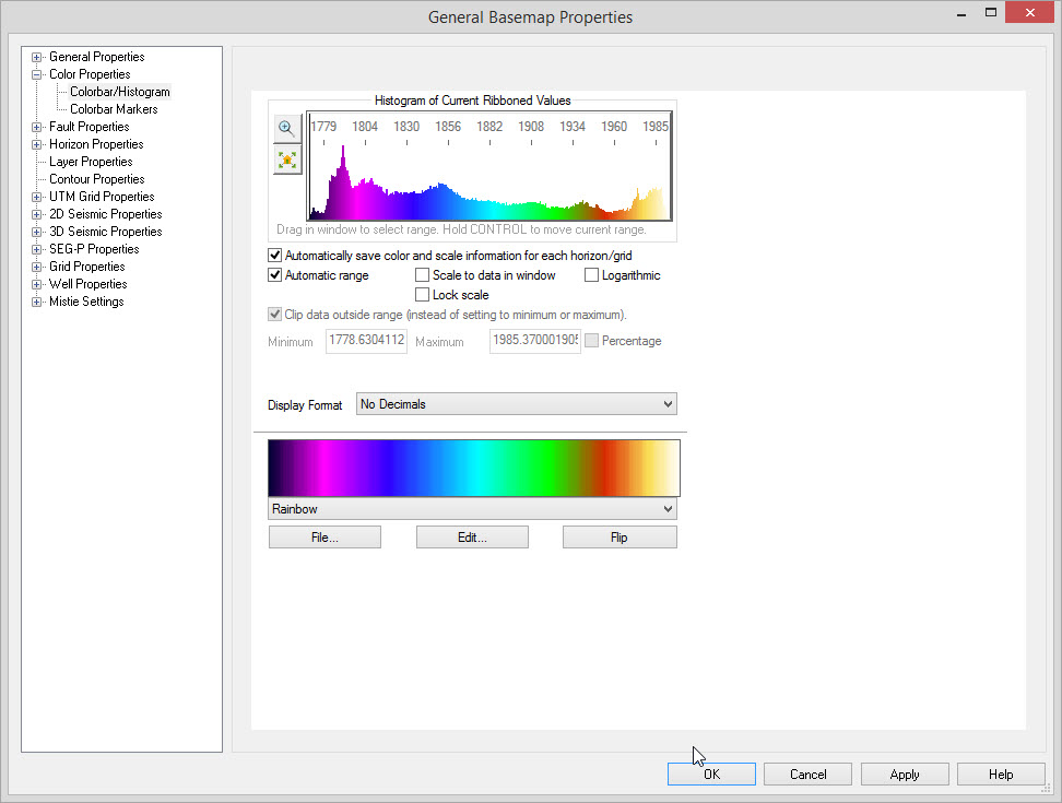 Percentage: When specifying a minimum and maximum, use percentage values instead of actual values. Useful when changing between different horizons, but looking at just a small sub-range of values.