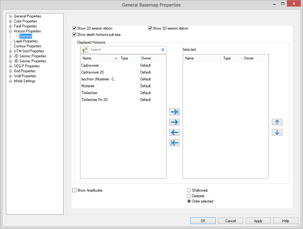 Select the horizons that you want to display on the Basemap. Left
