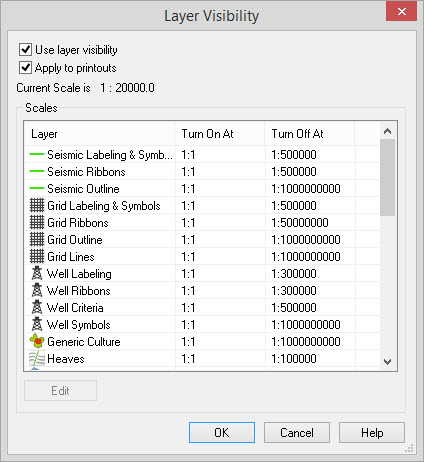 Apply to printouts: By default, layer visibility only affects the screen output. This was done to improve map performance while interpreting. To ensure a WYSIWYG approach, you should check this feature on. When checked on all hard copy will appear the same as on the monitor.