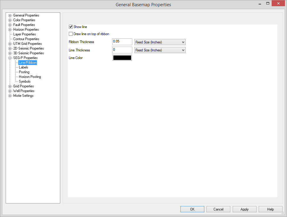 Ribbon Thickness: Specifies how thick horizon ribbons should be shown on SEG-P seismic lines.