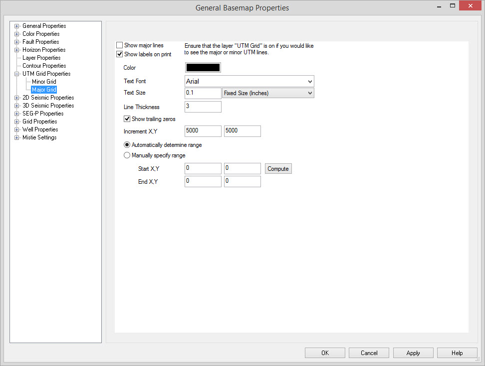 The UTM Major Grid page allows you to define a grid lines using map unit