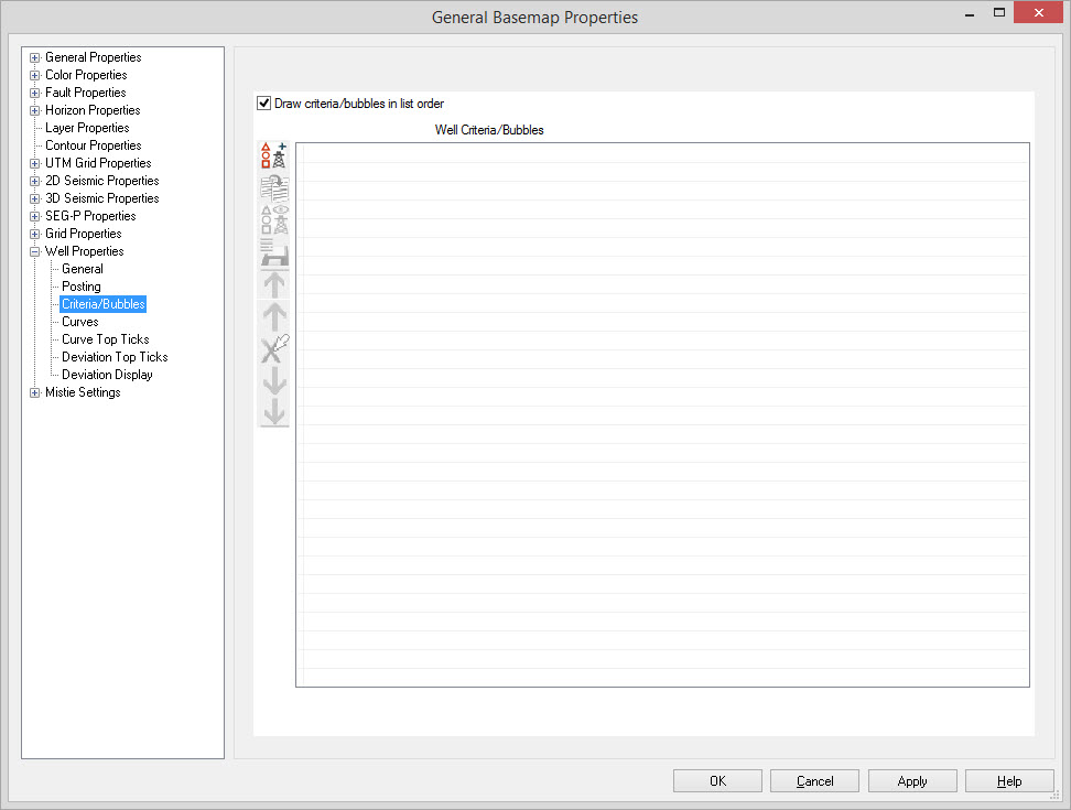 Criteria and bubbles are used to change the appearance of a well based information associated with the well. Wells that meet the criteria can by highlighted using a shape, or their well symbols can have unique color and size properties applied. Additionally, you can vary the size of the shapes and symbols using the bubble tools. Another option allows you to create a pie graph representing production/injection data centered around the well symbol.