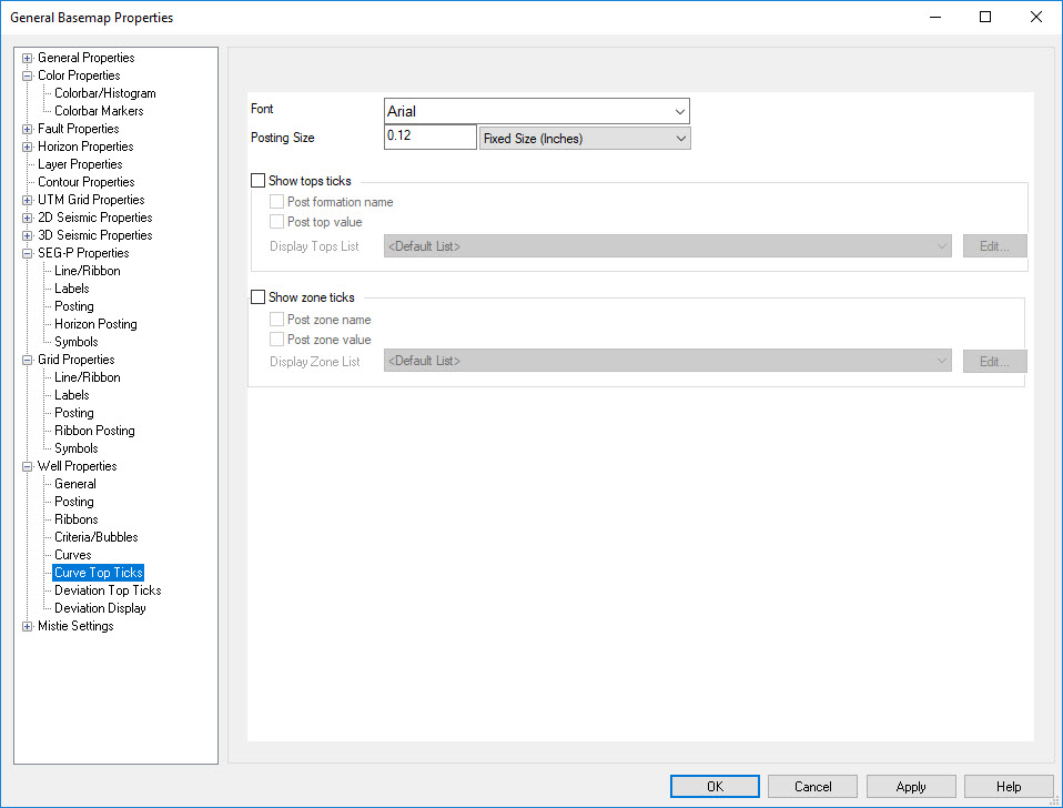Well Properties: Curve Top Ticks