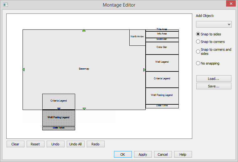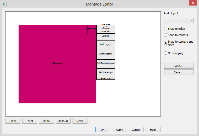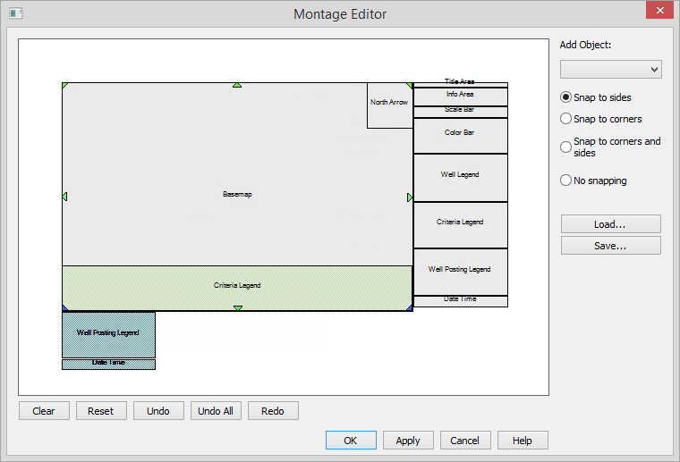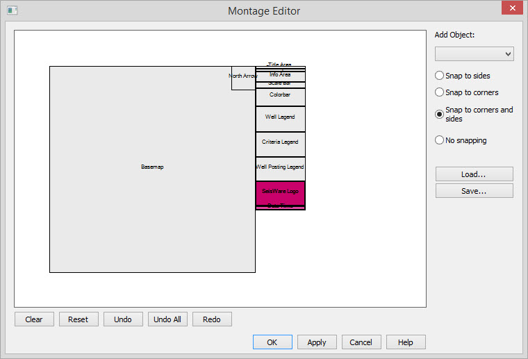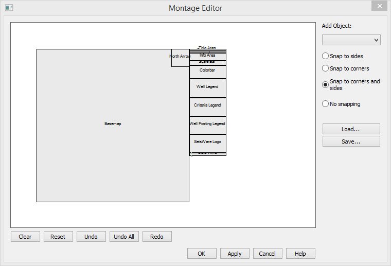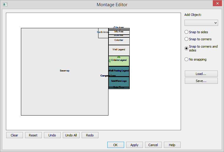 The Montage Editor allows you to customize plots by placing objects and defining their size and attributes. In addition you can attach image files created in the software, or from another applications.