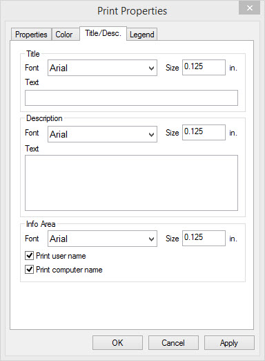 the drop down to select the font style and specify the size. Print user name:Include user name in the Project Information field of the Sidebar Legend. Print computer name:Include computer name in the Project Information field of the Sidebar Legend |