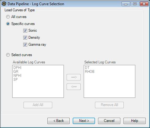 Specific Curves: Select this item to import/export just a specific type of curve for a well. You can select just Sonic, Density or Gamma ray logs.