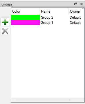 Groups can be created and deleted from this dialogue. Click the green plus icon to create a new group. Once created, the group can be given a name, and assigned a colour. After at least one group has been created, well pad legs can be assigned to that group.
