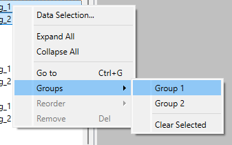 1. From the scene tree, manually select the legs to be assigned to the group. Then right click the selection. Under the right click menu, navigate to Groups, and then select the specific grouping to send the legs to.