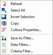 Criteria Filter: Open the Criteria Filter window to create a filter based on data type, an existing filter, or an expression.