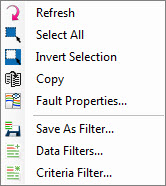 Copy: Copy the selected fault(s). Creating a copy of a fault will transfer ownership to the current user, allowing you to perform operations on faults that aren't your own. This will also allow you to perform an operation on a copy of a fault that you own, without altering the original version.