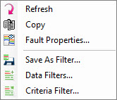 Copy: Copy the selected fault(s). Creating a copy of a fault will transfer ownership to the current user, allowing you to perform operations on faults that aren't your own. This will also allow you to perform an operation on a copy of a fault that you own, without altering the original version.
