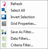 Criteria Filter: Open the Criteria Filter window to create a filter based on data type, an existing filter, or an expression.