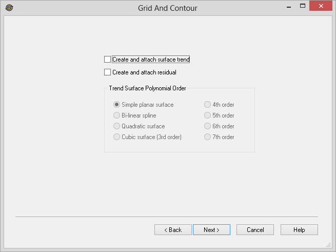 A residual surface is the difference between the trend surface and the gridded surface. The residual surface can show anomalies between the gridded surface and the trend surface.