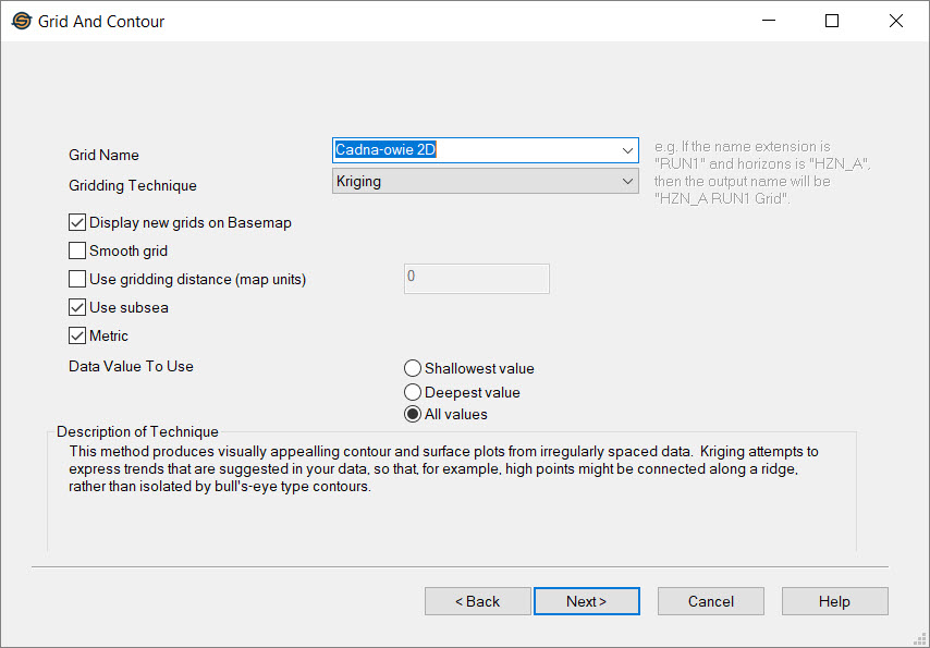 Grid Name: If gridding an existing contour this option will appear. Enter in the name that will be assigned to the grid.