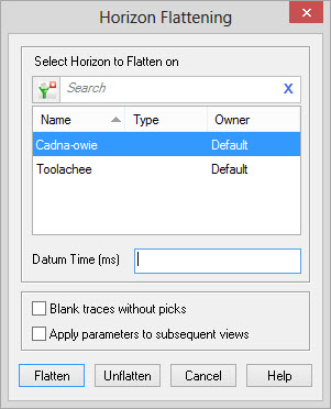 Use the Horizon Flattening dialog to select a horizon to flatten on.