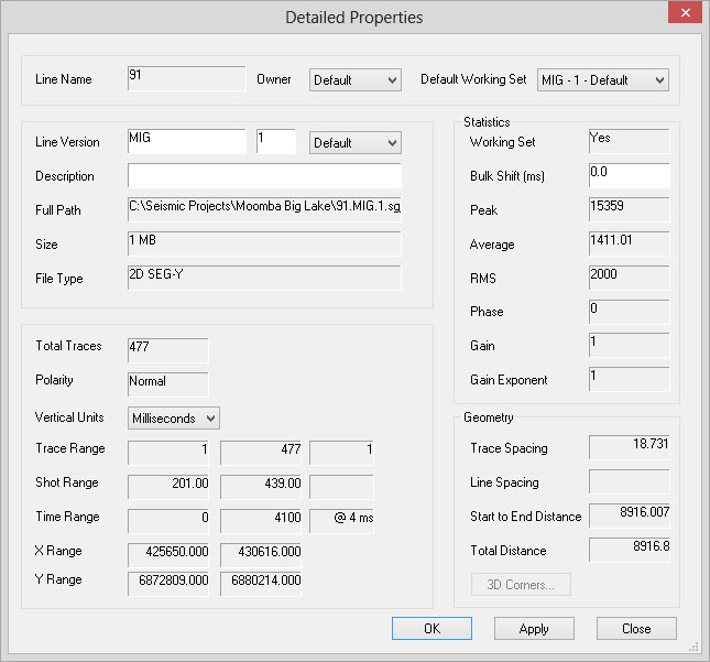 Geoscience > Main Launcher > Seismic Menu > Line Properties > Additional Resources > 2D Detailed Properties
