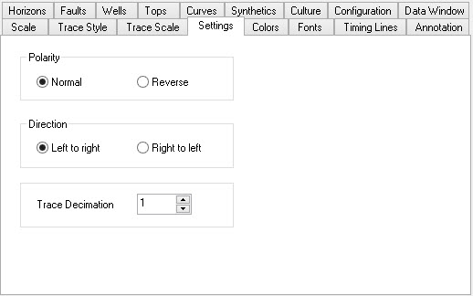Trace Decimation: Trace decimation specifies the number frequency of traces to load and display. The default setting of 1 will load all every trace, while a setting of 3 will load and display every third trace.