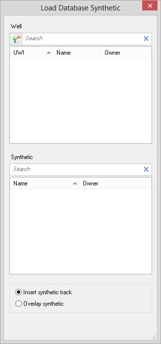 synthetic into your seismic display. It can be opened from the Well menu, or using the Load Database Synthetic icon ().