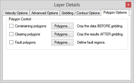 Place a check mark next to Constraining polygons, Clearing polygons, or Fault Polygons, and click to open the Select Polygons dialog box.