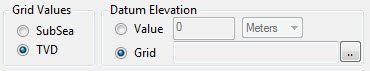 Select an existing depth grid from the list of available grids. From the Grid Values options, select the depth reference, and then for grids containing TVD values, specify the Depth Reference parameters.