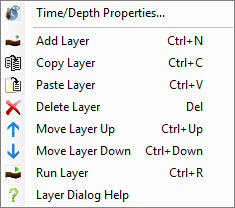 The following options are available when you select Convert Depth to Time on the Standard Toolbar. Note: Before you start, select your data and specify default gridding and contour options in the Properties dialog box. As you build your layer, be aware that there are additional options available in the Layer Details dialog box that may affect your results.