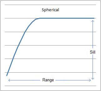 Range: The range represents the lag distance at which the variogram levels off. It is the greatest distance that two points on a surface are related to each other.