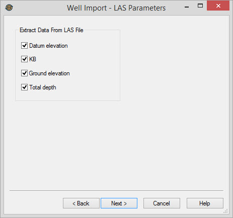 The LAS Parameters page of the Well Import wizard allows you to specify additional parameters when importing LAS files.